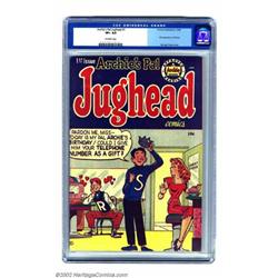 Archie's Pal Jughead #1 (Archie, 1949) CGC VF+ 8.5 Off-white pages. It took eight years from Juggie's first appearance in Pep Comics #22 in 1941 until his own comic debuted, but he did always move at his own pace. Moose makes his first appearance in this issue. Duh, cool! A bit of a corner crease keeps this one from flirting with Near Mint, but the copy is still the finest graded yet by CGC of this issue. Overstreet 2002 VF 8.0 value = $795. Important notice: We expect to be auctioning lots at the rate of 200-250 per hour. Sometimes eBay Premier live bid software cannot keep up with that pace, so we strongly recommend that you place a realistic proxy bid now as insurance to avoid disappointment. Also please note that all Heritage/CAA lots purchased through eBay Premier carry a 20% Buyer's Premium. Please make sure you read the Terms and Conditions.