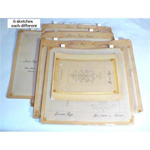 Architect drawings for Federal Duncan Phyfe room, being an architect or designer's set of 6 original pen and pencil sketches for a Duncan Phyfe door and fireplace. Designs are drawn on tissue paper mounted on pulp paper, ca. 1930. Framed, these Duncan Phyfe designs would make an ideal wall grouping in a Federal house. Each page with handwritten title. [1] Fireplace. Duncan Phyfe. [2] Duncan Phyfe. Room with details. Center of Fireplace. [3] Duncan Phyfe Door Details Full Size [4] Duncan Phyfe. Door details full Size (different from [3]. [5] Duncan Phyfe Room. Fireplace Panels Full Size. [6] Duncan Phyfe details. These may be a student's folio but they are exquisitely done and are worthy of framing. All 18x15 mounted, but for one smaller 12x9-1/2.