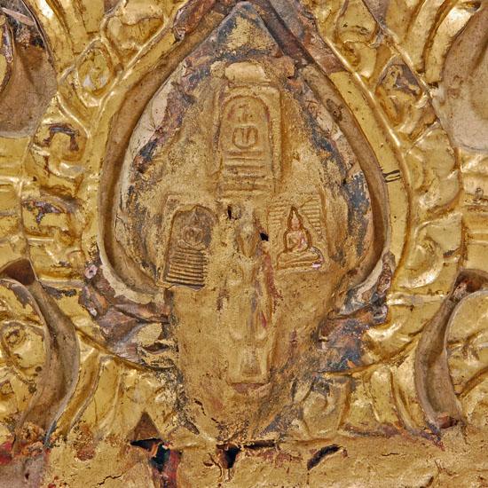 Early 1900s original Antique Teak Thai Buddhist Temple roof gable end. The piece measures 64" x 45" x 4".Rare piece from renovation of Wat (Temple) Nong Tum in Northern Thailand. Gilded and ornately designed with seated Buddha on elephants center. These teak pieces rarely come up any longer. Most newer temples are built of concrete. Rare Antiquity Investment opportunity!