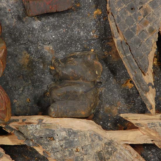 Excellent museum quality early 1900s original antique teak Thai Buddhist Temple roof gable end. The piece measures 64" x 45" x 4".Rare piece from renovation of Wat (Temple) Nong Tum in Northern Thailand. Gilded and ornately designed with seated Buddha on