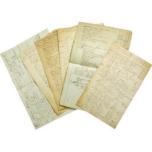 <B>Archive of Accounts for the 18th Century Philadelphia Schooner <I>Nimrod</B></I>,</B></I> consisting of eight manuscript documents, approximately 14 pages, 4to., 1782-1784. This collection offers a fascinating look at an American merchant vessel's financial records during the waning days of the Revolution and its immediate aftermath. Wages, cargo manifests and creditors are named. The <I>Nimrod,</B></I> owned in large part by Samuel Morris & Co., appears to have primarily conveyed commodities such as flour up and down the Eastern Seaboard and over to Cuba. Small splits and stains as expected. Very good condition. <I>From the collection of Henry E. Luhrs.</B></I><BR><BR><b>Shipping:</b> Flat Material, Small (<a target="_blank" href="http://www.heritageauctions.com/common/shipping.php">view shipping information</a>)