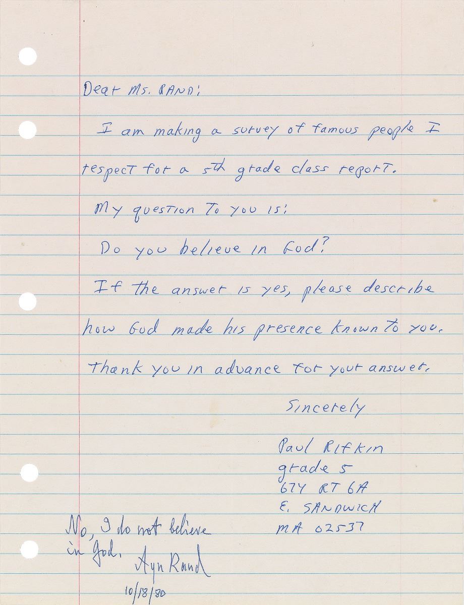 Ayn Rand: “No, I do not believe in God.”