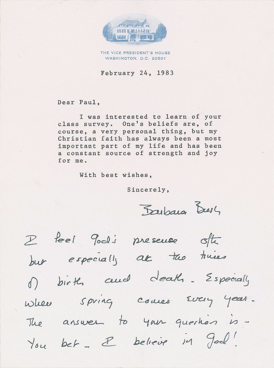 Barbara Bush: “I feel God’s presence often but especially at the times of birth and death.”