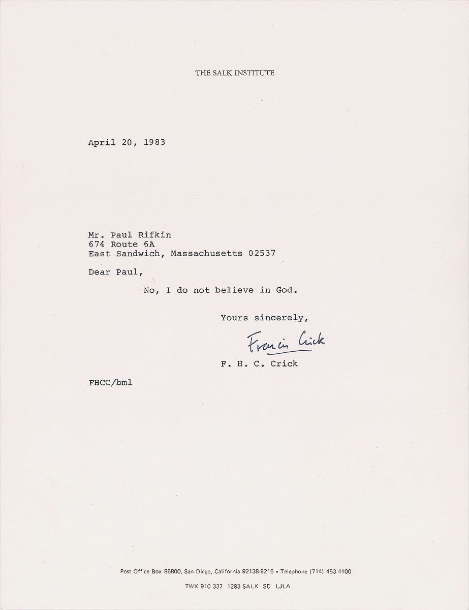 Francis Crick: “No, I do not believe in God.”