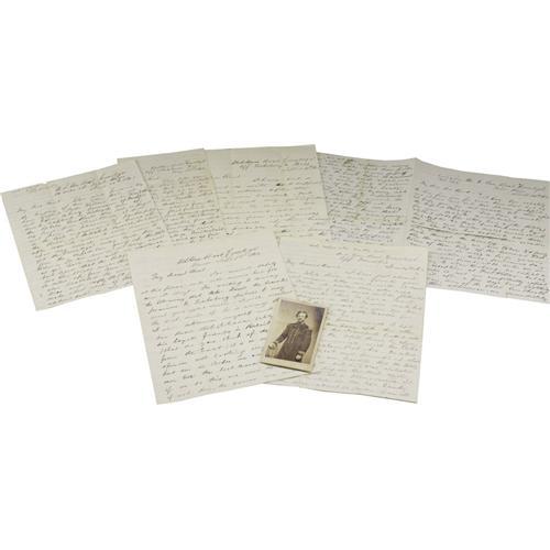 <B>Archive of Six Autograph Letters of Lieutenant George Blodgett, Commander of U.S. Gunboat <I>Conestoga</B></I></B></I><B>, 1862.</B></I> The letters start in April, 1862 when Blodgett, only 24 years old, assumed command of the <I>Conestoga.</B></I> He proudly describes his ship, “<I>The noble craft which I have the honor of commanding is not iron clad, but is, the fastest vessel in the fleet.</B></I>” He promises that if in combat, “<I>…she will come out victorious or sink with our glorious flag floating bravely over her.</B></I>” Blodgett describes several engagements with Confederate gunboats and batteries, including the naval battle at Saint Charles, Arkansas on June 17, 1862. He also writes of his hope, after the war, to command a steamship running between California and China. Blodgett, a graduate of the United States Naval Academy, wrote informative, interesting, and readable letters. The archive also includes a <I>carte de viste</B></I> of Lieutenant Blodgett in full uniform (2.5” x 4”) and ten pages of research. He died in November 1862. A fine, researchable archive.<BR><BR><b>Shipping:</b> Flat Material, Small (<a target="_blank" href="http://www.heritageauctions.com/common/shipping.php">view shipping information</a>)