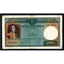 Lisbon, Portugal, 13th March, 1941, 100 Escudos, P-150, Issued banknote, red, black and blue with portrait of Ribiero on left, S/N ANJ 16678, VF to VF