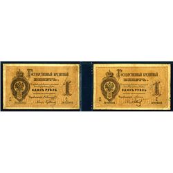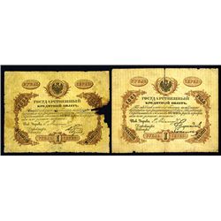 Russia, Lot of 2 notes, Includes 1861, 1 Ruble, P-A33a, Issued banknote, black on brown and tan underprint, Imperial Arms top middle, S/N 6452111, App