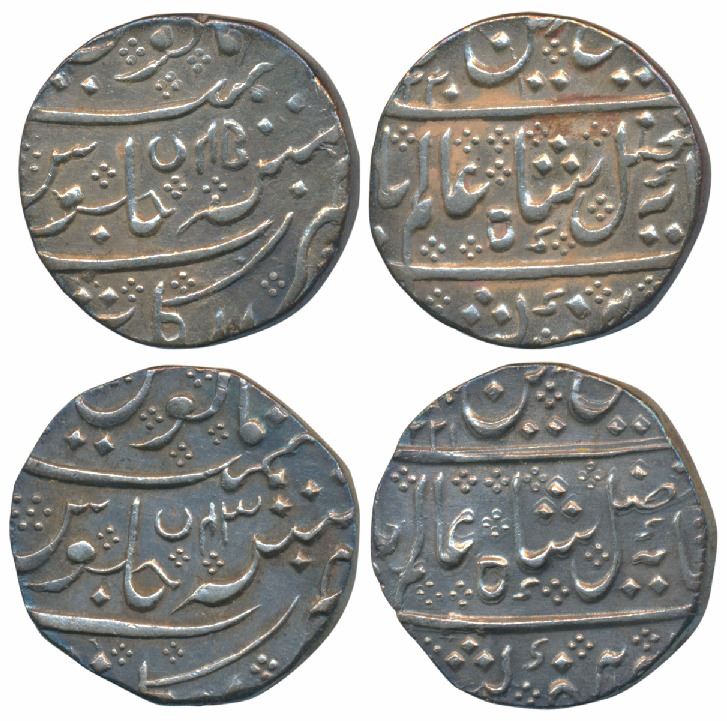 Arcot Mint, Silver Rupee (2), in the name of Shah Alam II, AH (1)220/45 and (1)221/43, crescent on rev. (KM 15). About Extremely Fine to Extremely Fine. (2)