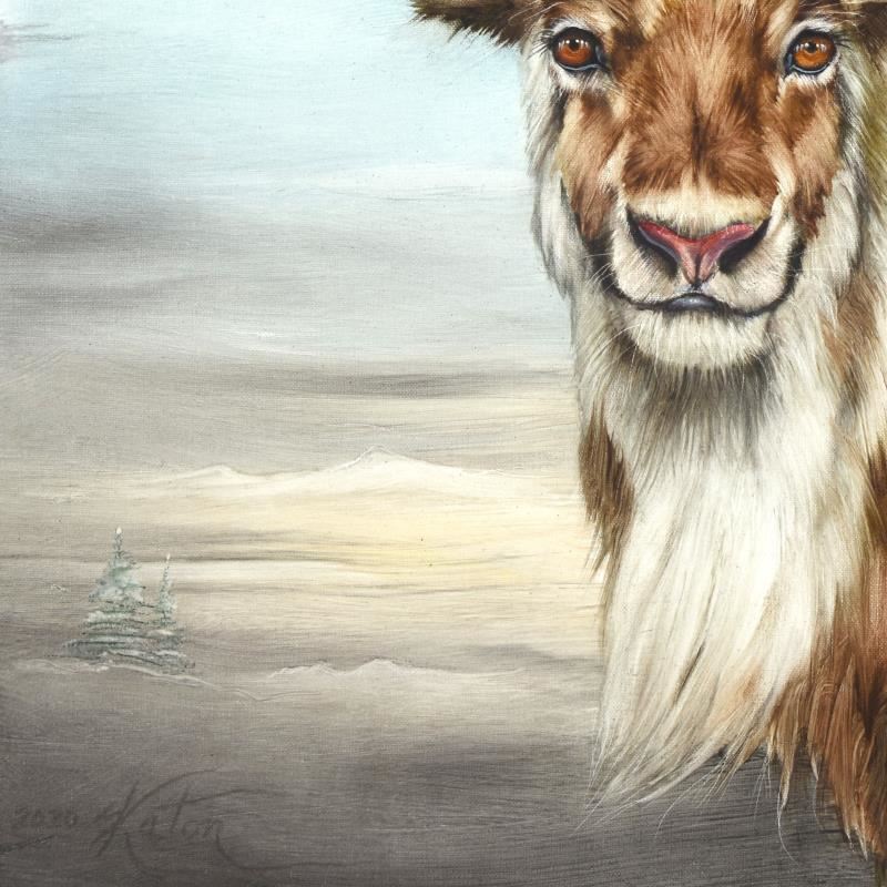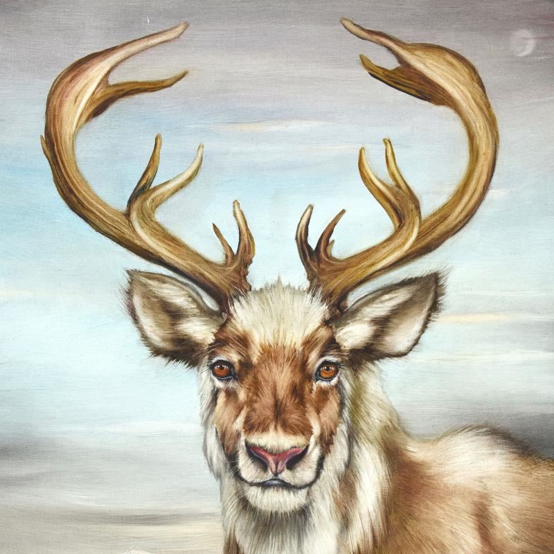 "Arctic Reindeer" is an original oil painting on stretched canvas by Martin Katon, hand signed by the artist. Includes Letter of Authenticity. Measures approx. 24" x 30" (image).