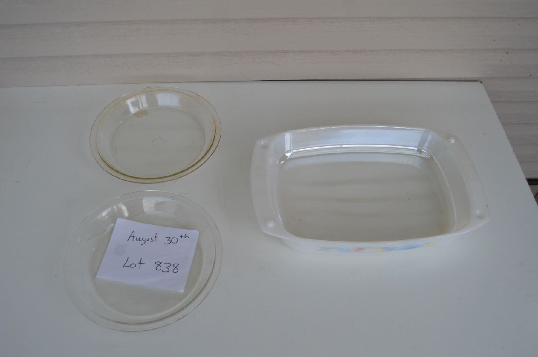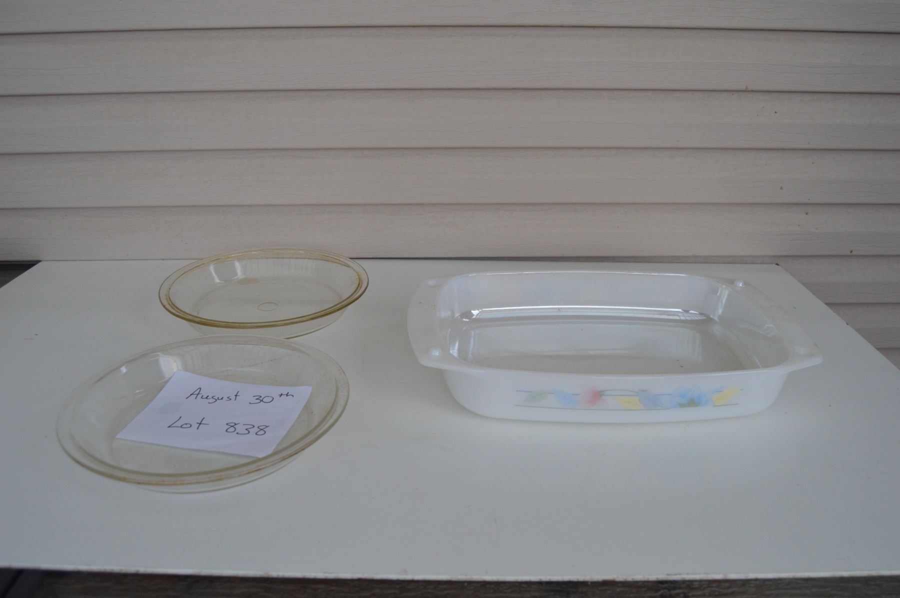 Arcuisine casserole dish (no lid) - Pyrex pie plates x 2