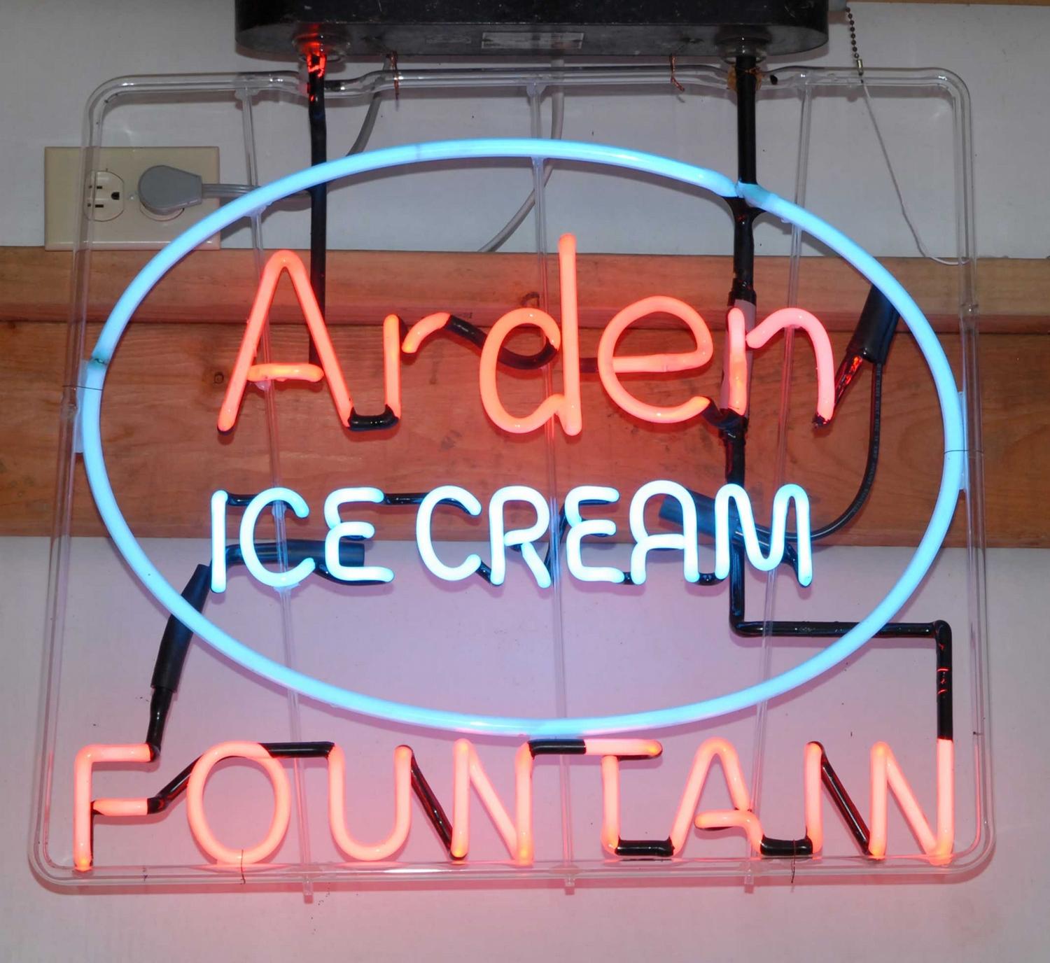 Arden Ice Cream Fountain Neon Sign. Excellent working condition. 21 X 30 inches.