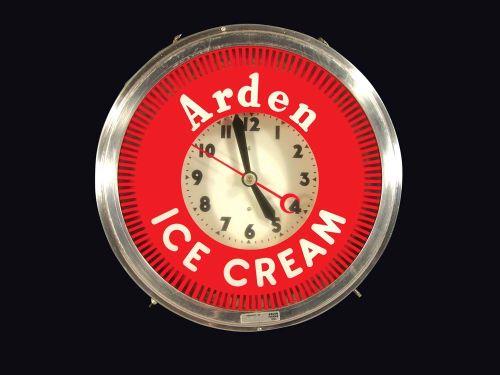 Arden Ice Cream Light Up Spinner Clock. Excellent working condition. 22 inch dia.