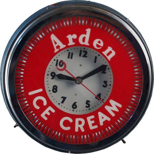 Arden Ice Cream Store Lighted Clock 10" dia. working 1940's to 50's