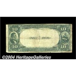 Ardmore, OK - $10 1882 Date Back Fr. 546 The Ardmore NB Ch. # (W)5922A nice early Oklahoma type from a bank which issued Second Charter examples only before bowing out in 1917. The Kelly census shows just five state issue notes, along with one Territorial example from here. Pen signed Fine, the top margin trimmed just a bit close. <BR><BR><B>Important notice:</B> Heritage usually auctions material at the rate of 200-250 lots per hour. On some occasions eBay Live bid software or the Internet may not be able to keep up with the pace of the auction. We recommend placing a realistic absentee bid now as insurance to avoid disappointment. Occasionally the auctioneer may eliminate or reject an eBay Live bid, and the auctioneer may also reopen a lot after the close of the eBay live bidding (usually because we missed an audience bid), and may reject your bid even if it shows you as the winning bidder. By bidding via eBay Live, you agree that Heritage may award the lot to another bidder at its sole discretion under the circumstances described above or any other reasonable circumstances. Since eBay bids are not shown to us until we open the lot on the floor, we treat those bids just like floor bids. In most cases the floor responds before the eBay bid is presented to us, due to Internet lag time, so for consistency we have made it a policy that floor bids are always considered first over tie eBay live bids. Also please note that all Heritage lots purchased through eBay Live carry a 20% Buyer's Premium. Please make sure you read the Terms and Conditions before you bid. <BR><BR><B>IMPORTANT ANNOUNCEMENT ABOUT RESERVES:</B> Heritage now divulges all reserves on its web site 7 days before every auction. If you want to know whether the reserve on this lot has been met, and if not, what the reserve amount is, please visit this lot page on the HeritageCoin.com web site, or email: bid@HeritageGalleries.com