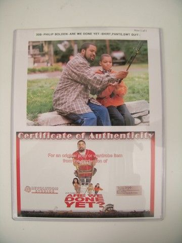 A popular comedy-drama from 2005 "Are We there Yet?" starred Ice Cube as a playboy bachelor who has to deal with his girlfriend's less than cooperative children. These are one of those outrages kids', Kevin Kingston's (Philip Bolden), hero screen worn shirt, pants and sweatshirt. comes with a COA.
