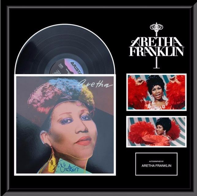 Custom framed Aretha Franklin signed Aretha Album and photo collage. Album autographed by Aretha Franklin. Approximate dimensions 24x24 inches. This item is authenticated by PSA. This item comes with a Certificate of Authenticity from a third party authenticator. This Certification of Authenticity does not imply that the item will be certified by any other rival authentication companies. The accompanied certification is the only certification the auction company can confirm. These items are being sold as collectable pieces and there is no guarantee that this item can be resold on any online marketplace. Each of these companies has their own policies and politics.