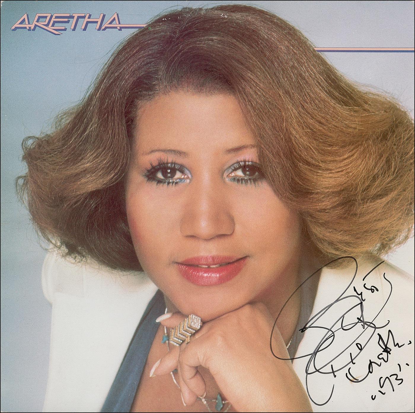 Aretha album signed in black felt tip. In fine condition. The record is not included.