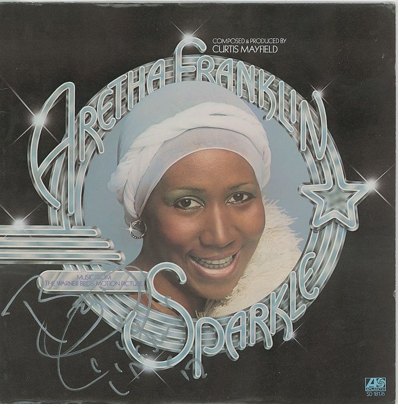 Sparkle album signed on the front cover in silver ink. In fine condition, with a bit of light signature contrast, a mild album impression, and a bit of light edge wear. The record is included.