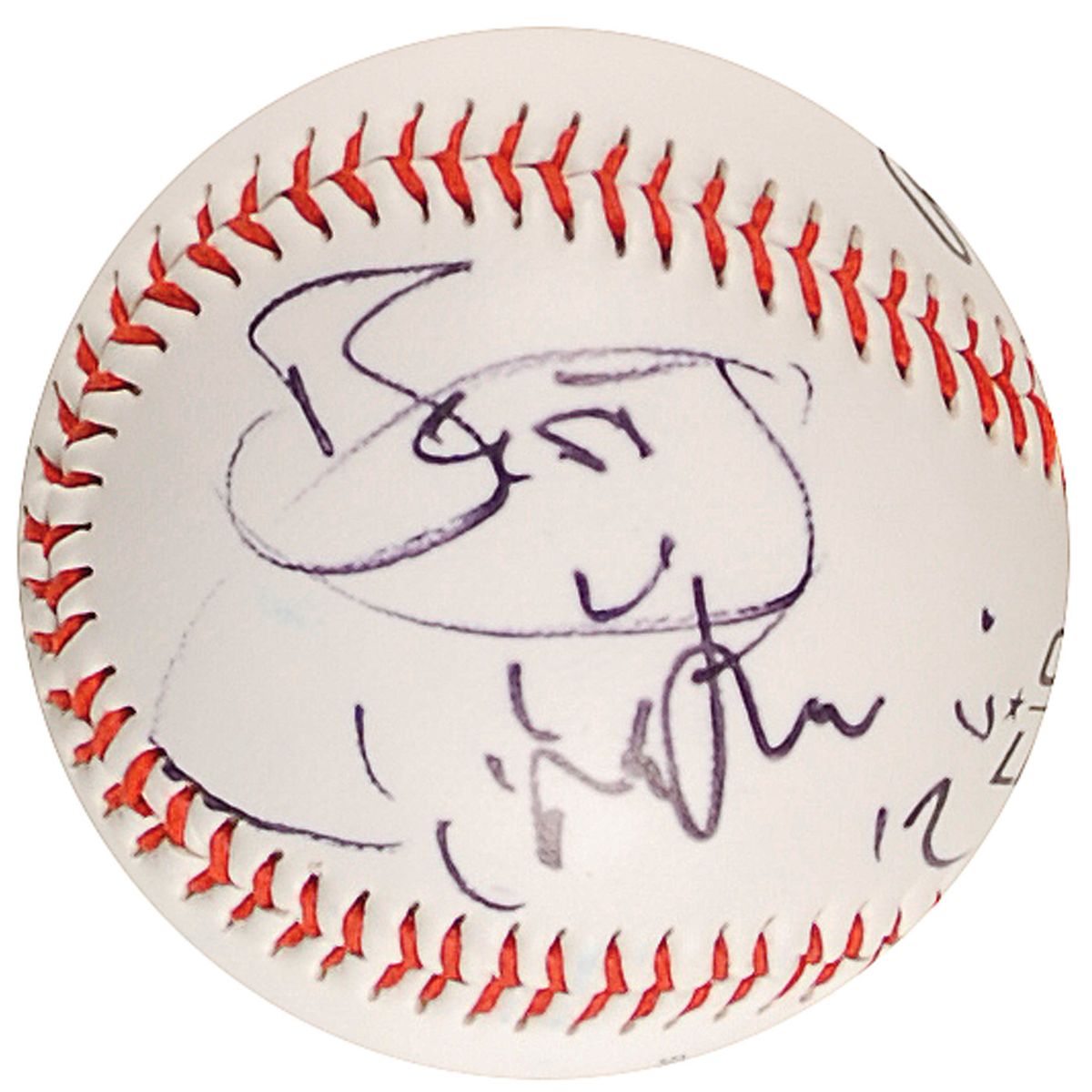 Official Rawlings League baseball signed in black felt tip on a side panel. In fine condition, with a few light blue spots to other side panels.