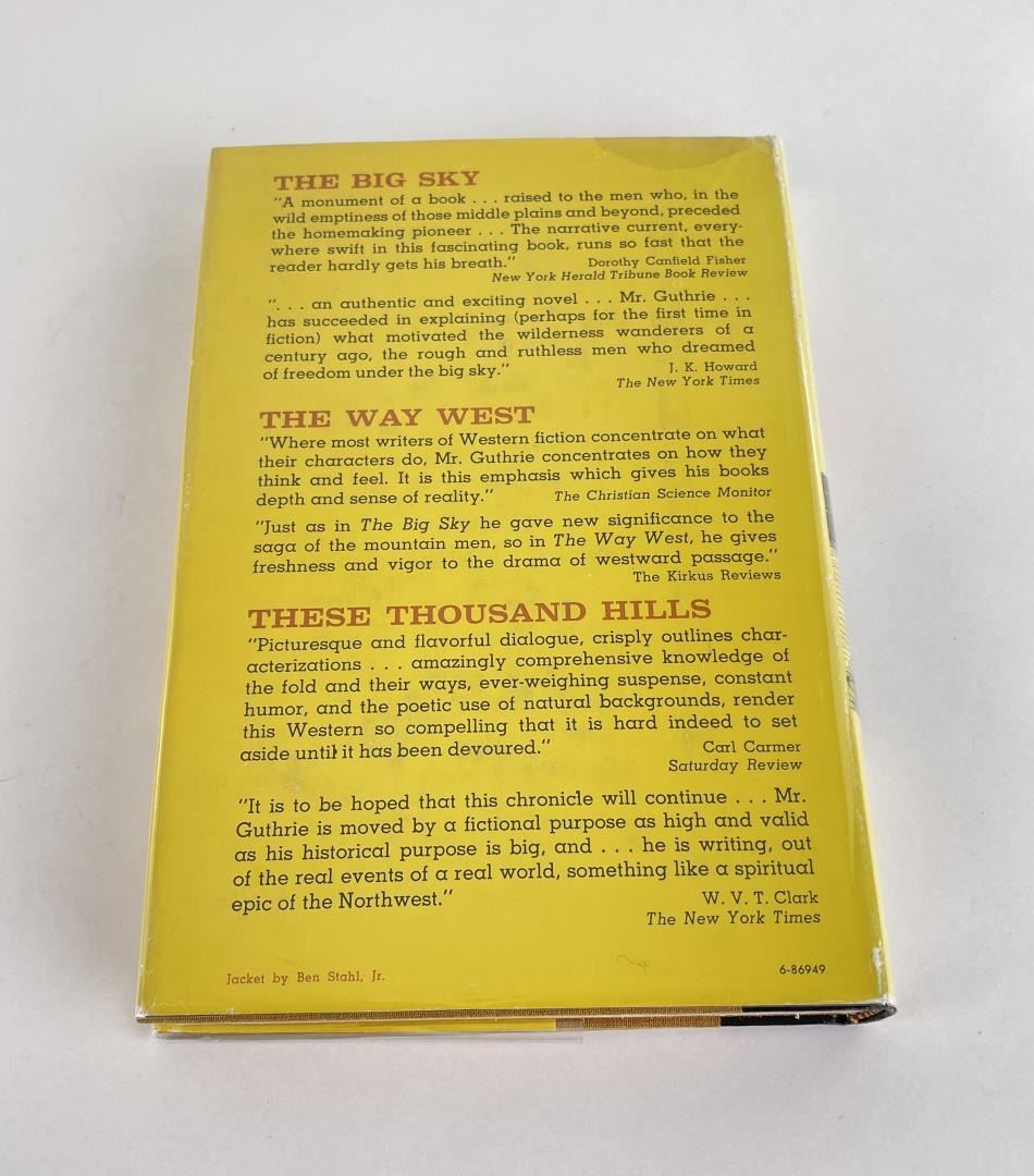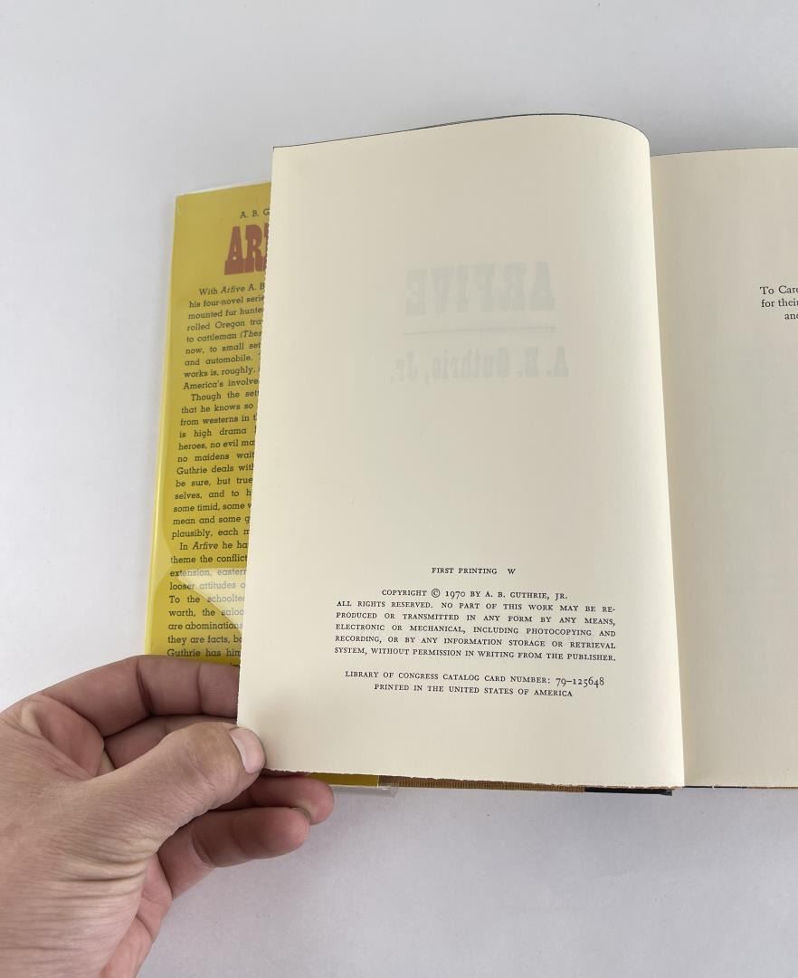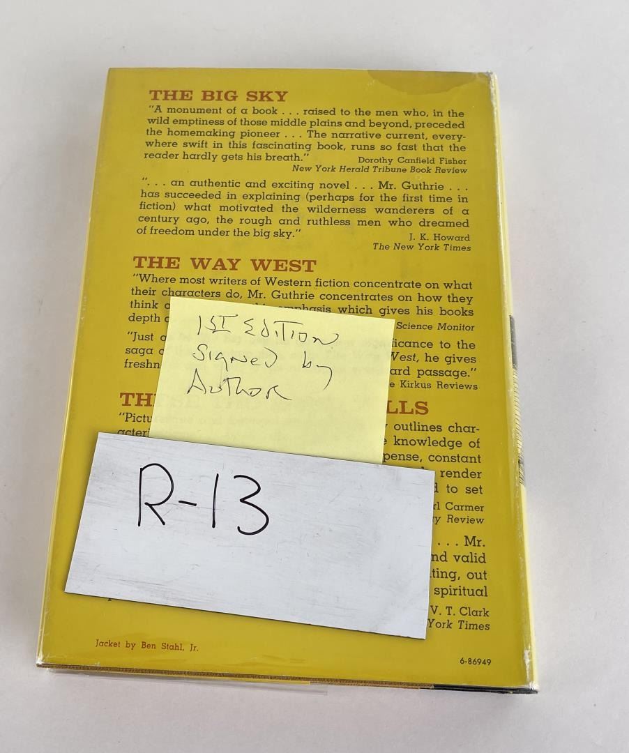 A.B. Guthrie JR. 1970 1st Edition, 1st Printing. Provenance: Jim Blodgett Collection.