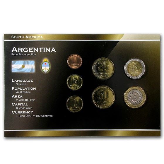 One piece Argentina 1 Centavo-2 Pesos 7 Coin Set BU