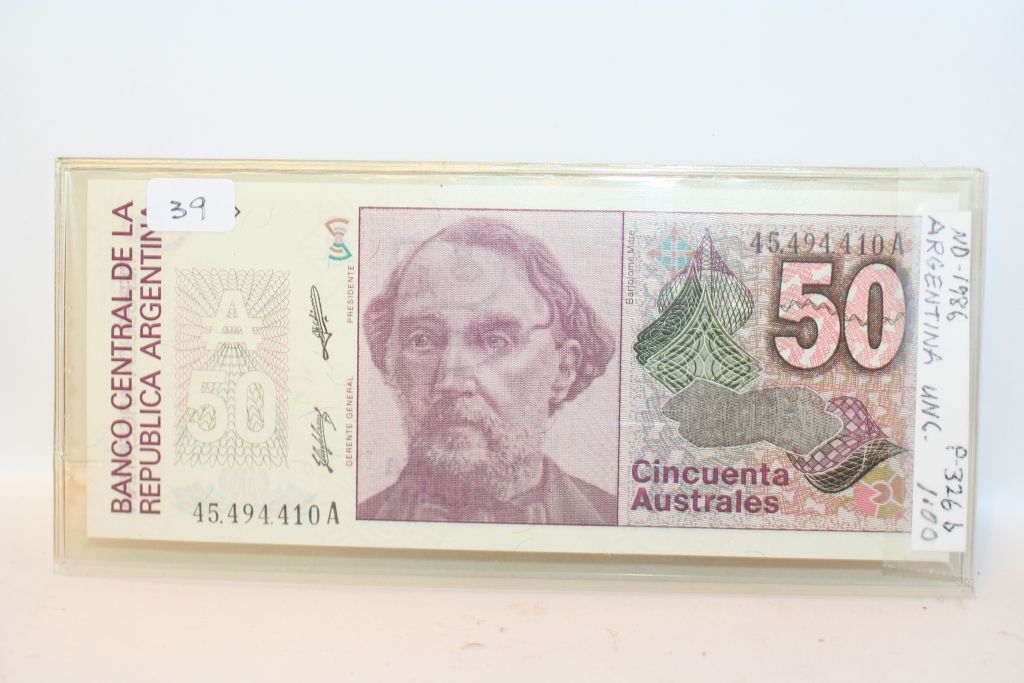 This lot is a 1986 argentina 50 australes note