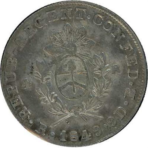 Very scarce 4 Reales from the province of La Rioja. Somewhat dirty, but a choice Very Fine, and free of all the usual defects. Assayer "RB".