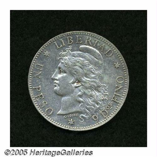 <B>Republic Peso 1882, </B></I>KM29, lustrous XF, minimal surface marks and no rim damage.