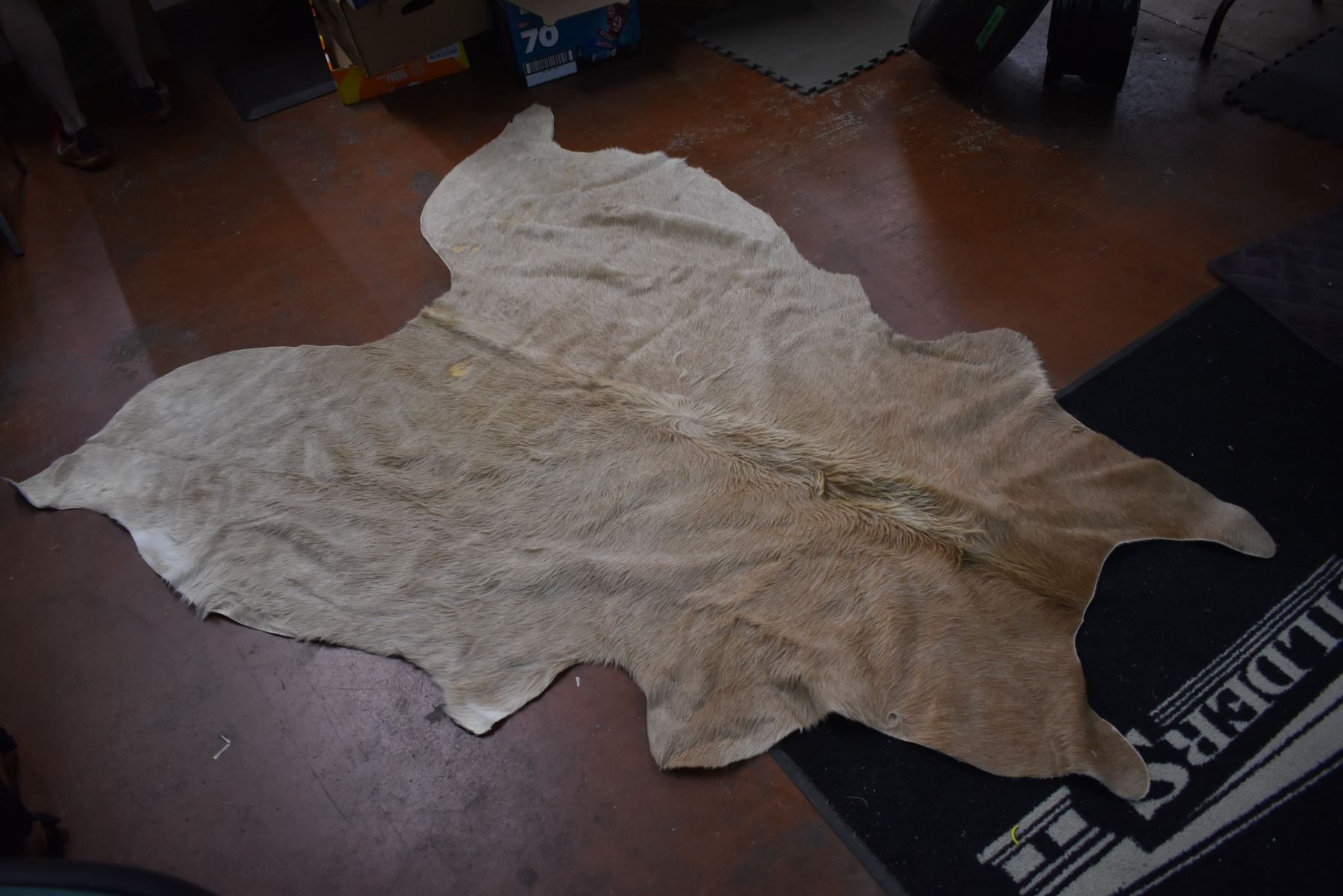 Argetine Cowhide rug (approx 6ft across) + small throw rug - 54"round