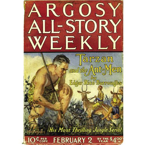 <B>Argosy-All Story Weekly Group (Munsey, 1924-38).</B></I> The group includes February 2, 1924 (contains "Tarzan and the Ant Men" by Edgar Rice Burroughs - GD/VG); June 2, 1928 (FN/VF); January 30, 1937 (FN); March 26, 1938 (Burroughs story - FN/VF); February 12, 1938 (Burroughs story, brittle edges - GD/VG); and April 2, 1938 (VG/FN). Approximate Bookery's Price Guide to Pulps value for group = $250. <I>From the John McLaughlin Collection</B></I><BR><BR><b>Shipping:</b> Un-Slabbed Comic (<a target="_blank" href="http://www.heritageauctions.com/common/shipping.php">view shipping information</a>)
