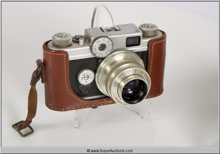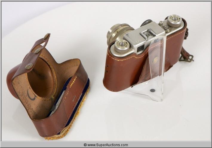 Arugs C-Four / 35 mm Camera / in Leather Case / F:2.8 / 50 mm Cintak Lens / L 6 1/2" x W 4" x H 4"