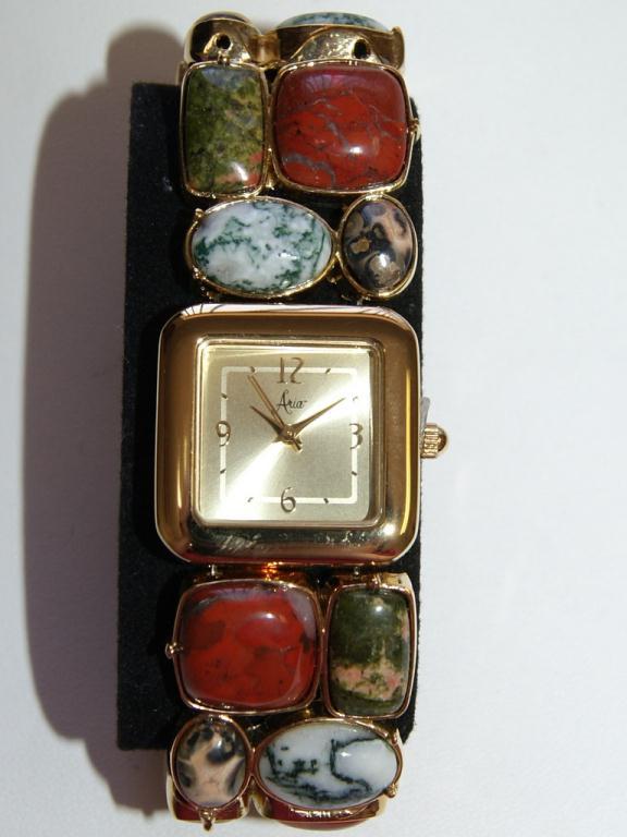 Aria Authentic Gemstone Watch- Agate & Jade- Mint In Box