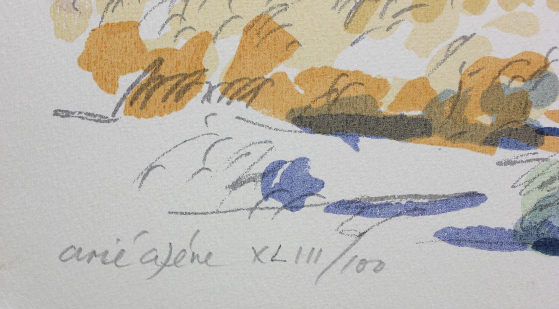 Artist: Arie Azene. Medium: Lithograph. Size (Unframed): 19.5" x 27.5". Additional: Born in 1934 in Germany, Arie Azene is an exceptional observation realist and a master of watercolor technique. He rarely limits himself to one subject of one style, constantly edging out into a variety of approaches. Subjects range from arabesque floor tiles to long views of the temple Mount, or details of shadows falling across hidden portals or wrought iron gates, in style from the Academic realism to decorative abstraction. Somehow, when thrown together on the same page, the contrasts never fight for supremacy not fall into obscurity.. Reference# 10534.