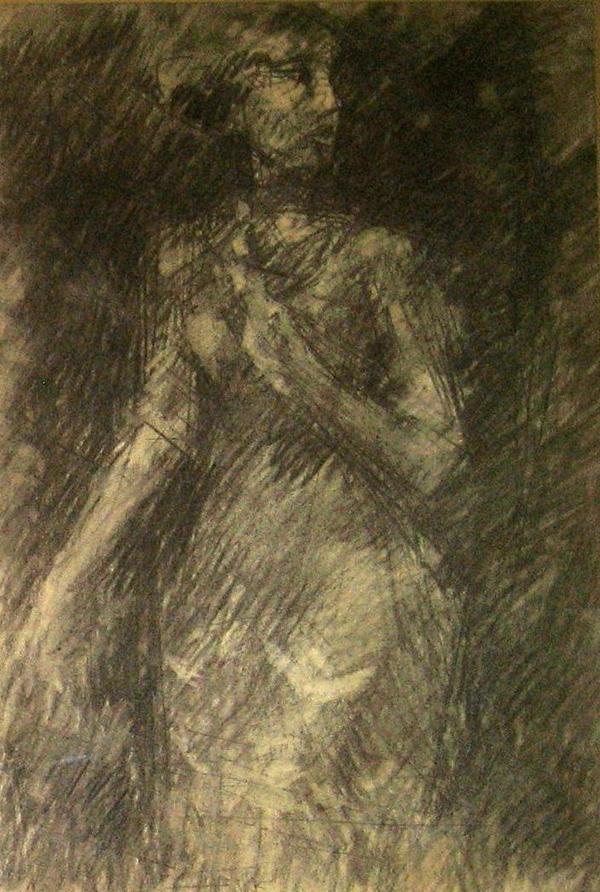 Arie Lubin, Israeli Art, 1897 - 1980, Young Woman, Charcoal, 48x32cm, Signed., , , , ,