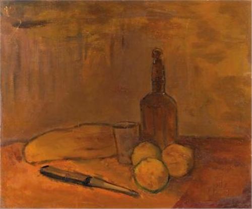 Arie Lubin, 1897 - 1980, Still Life and Wine, 1932, Oil on canvas, 46x55 cm, Signed and dated, , , , ,