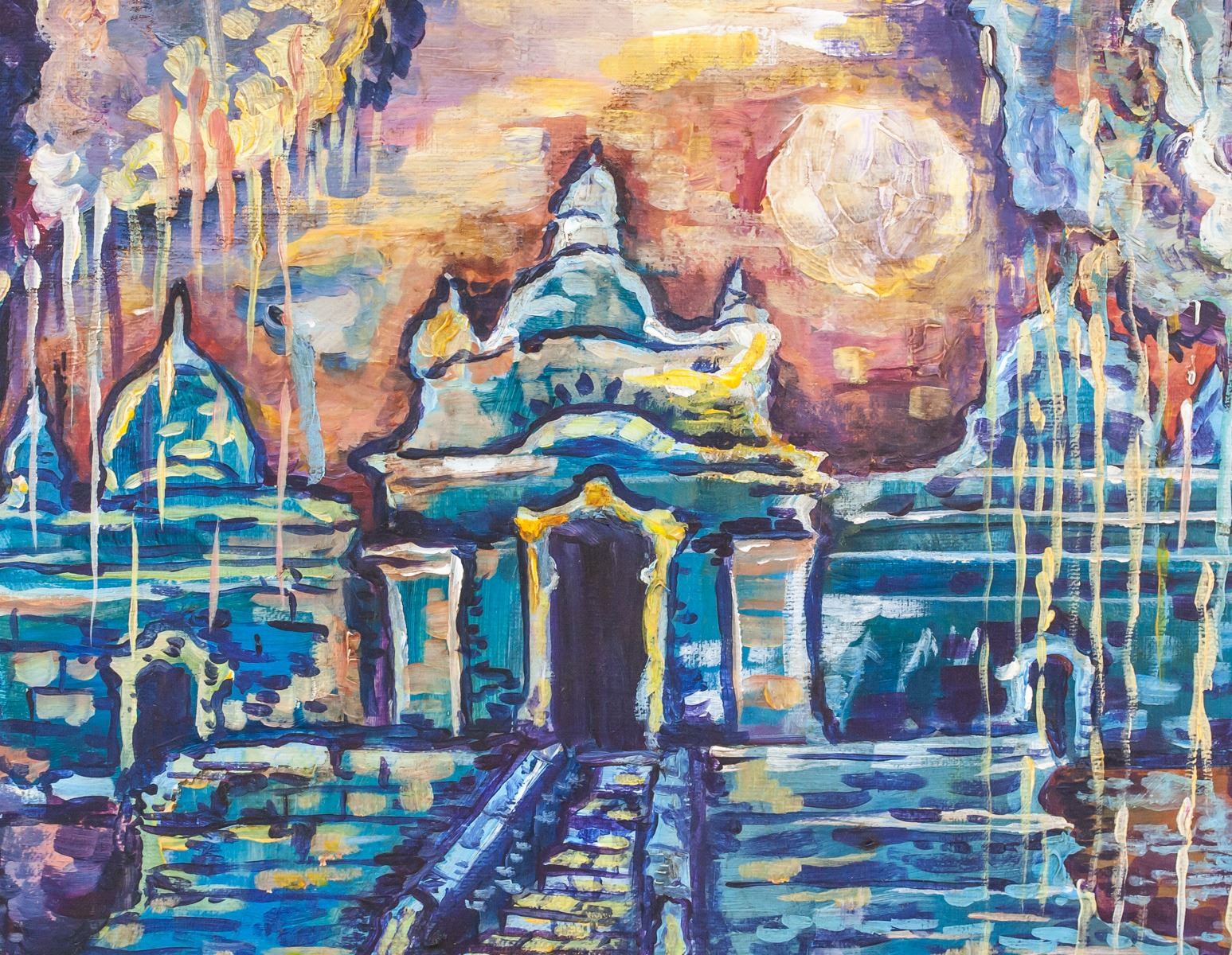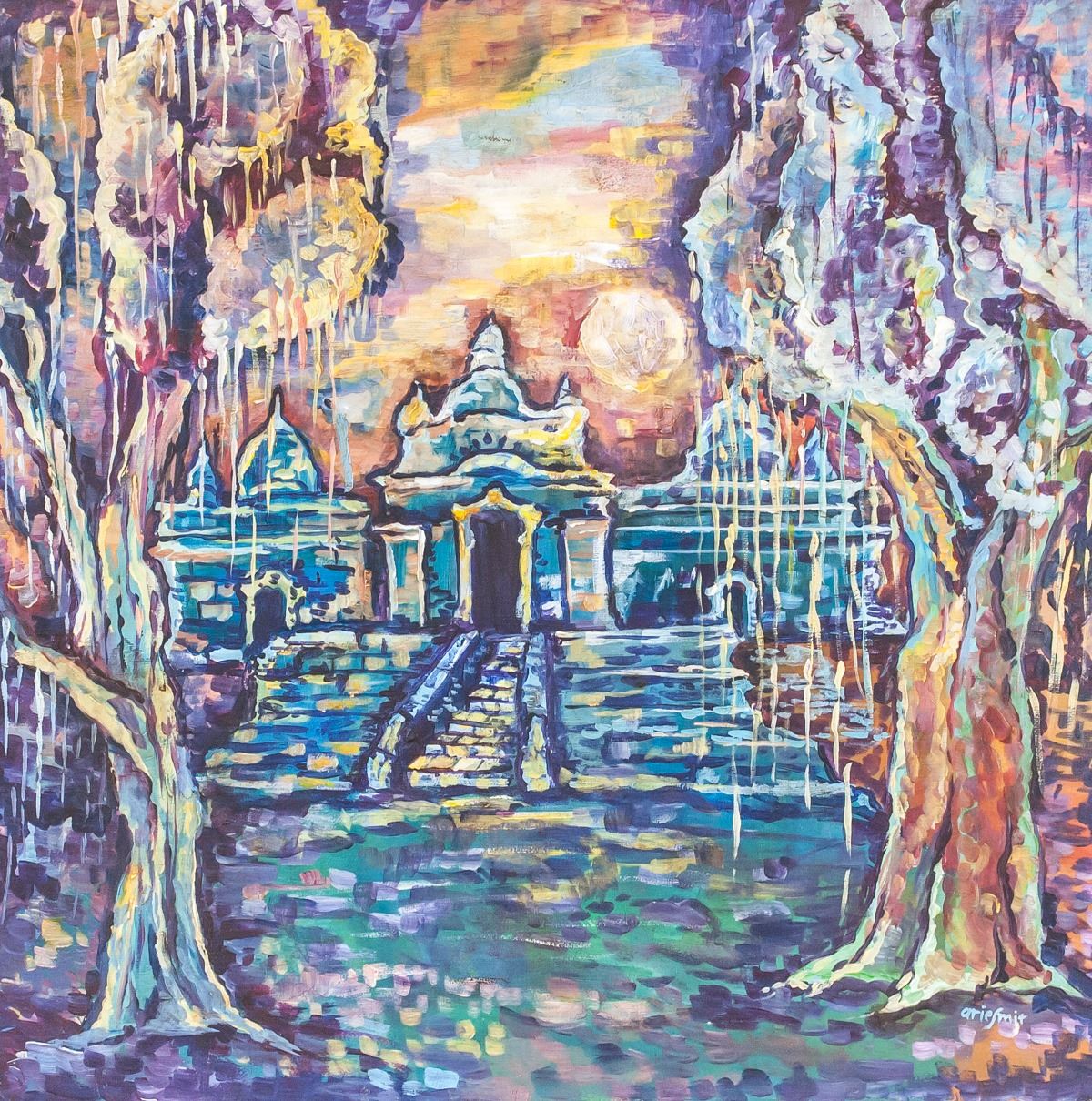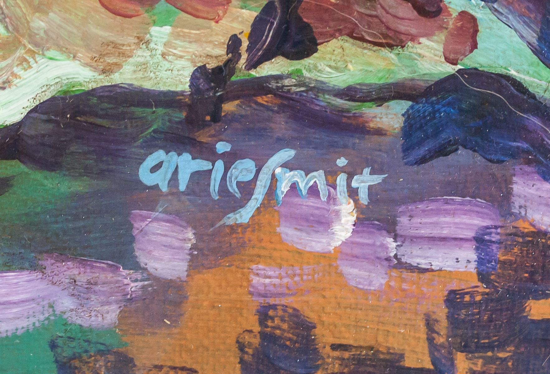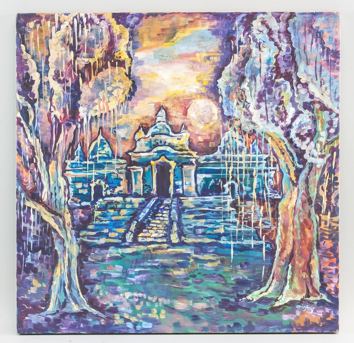 Oil on canvas. Featuring image of a grand building. Rendered in fantastical colors in the impressionist style. Signed " arie smit" in the bottom right corner. Attributed to Arie Smit (1916-2016, Dutch-Indonesian). 50 x 50 cm (19.75 x 19.75 in). Provenance: This lot carries limited provenance from a Southern Italian estate
