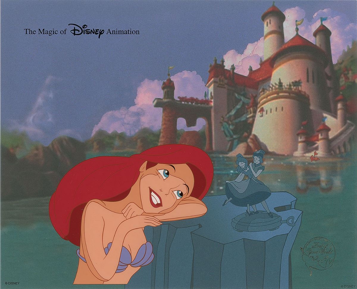 (Walt Disney Studios, 2007) Original limited edition hand-painted cel featuring Ariel entitled ‘Part of Your World,’ sold only in 2007 in the Disney-MGM Studios theme park at Disney World. These cels were painted for the ‘Magic of Disney Animation’ series. The cel is placed on a printed color background. Character image measures 6 x 5, with overall dimensions of 13 x 10.5. In fine condition.