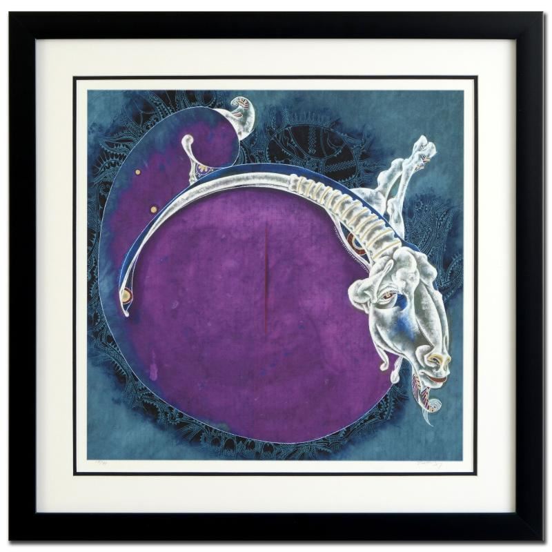 The zodiac is a phenomenological study, formed by coordination between 12 specific constellations in space and birth of one specific human being in time, contrasting 12 signs that guide the meditation of love, fate and purpose of one's life. "Aries (3/21 - 4/20)" is a limited edition giclee on paper by talented Chinese artist Lu Hong, numbered and hand signed by the artist! This piece comes custom framed. Measures approx. 28" x 28" (with frame), 20" x 20" (image). Please allow 5 additional business for items that include canvas stretch or framing.