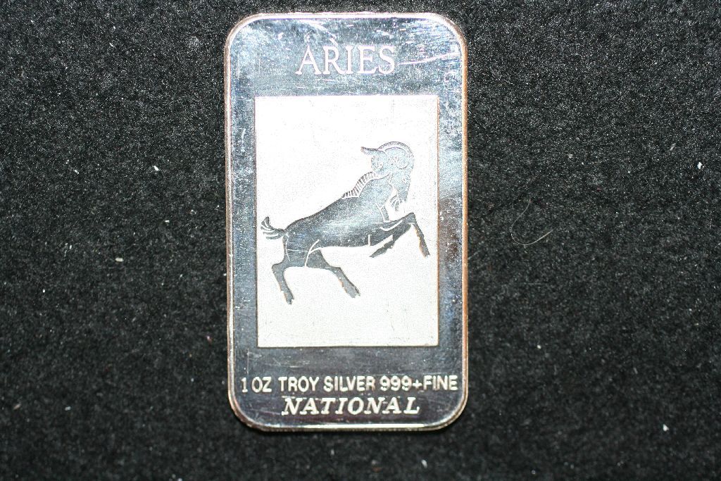 "Aries" Silver Ingot; 999+ Fine Silver 1 Oz.