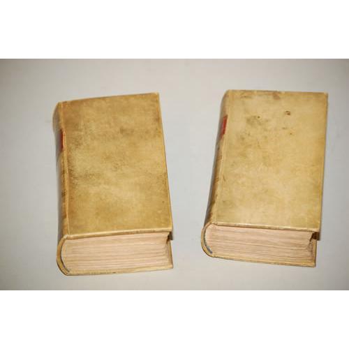 Ariosto, Lodovico. L' Orlando Furioso - Complete in 2 Volumes. Firenze: Presso Giuseppe Molini All' Insegna Di Dante, 1823. 16mo - over 5¾" - 6¾" tall. Hard Cover. Very Good ++ condition. Vellum bound, with red leather spine labels, on gilt decorated spines. With armorial bookplates and signatures of Percival S. Umfreville Pickering. Half-titles, frontis-piece & additional decorative title pages in each volume. [12] xxxvii [1] 699pp [1]; [8] 727pp, with binding and hinges tight. CANTOS.