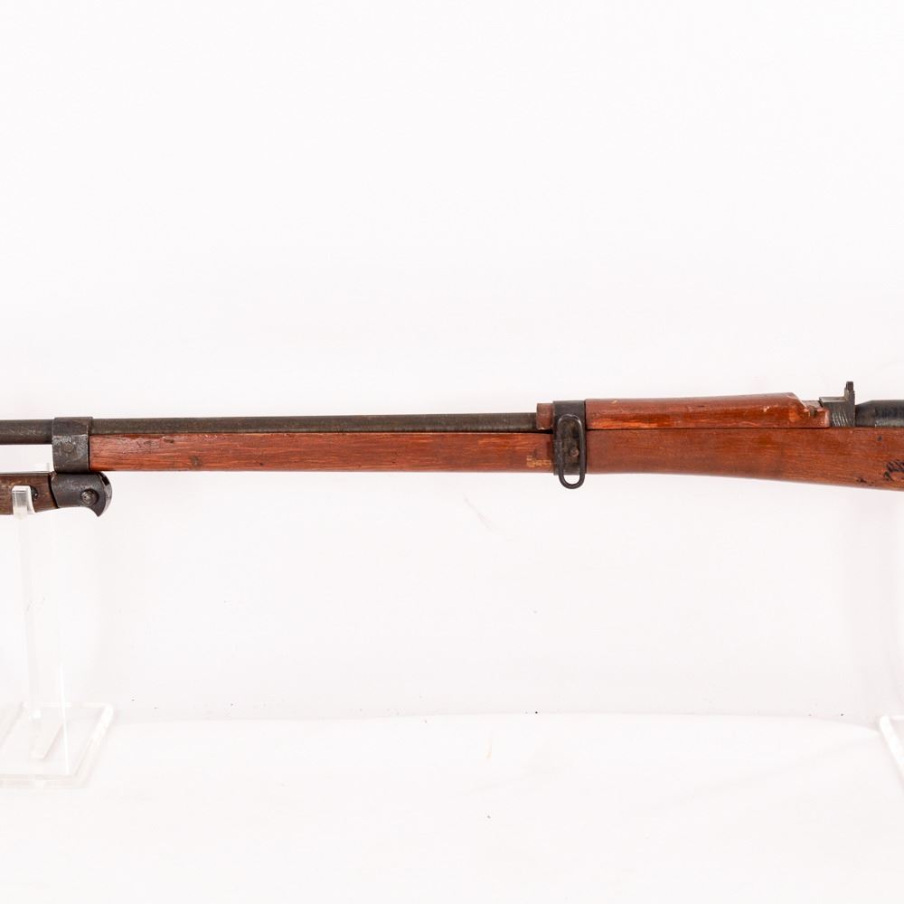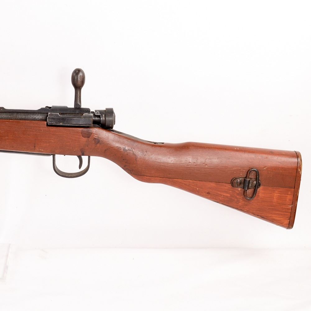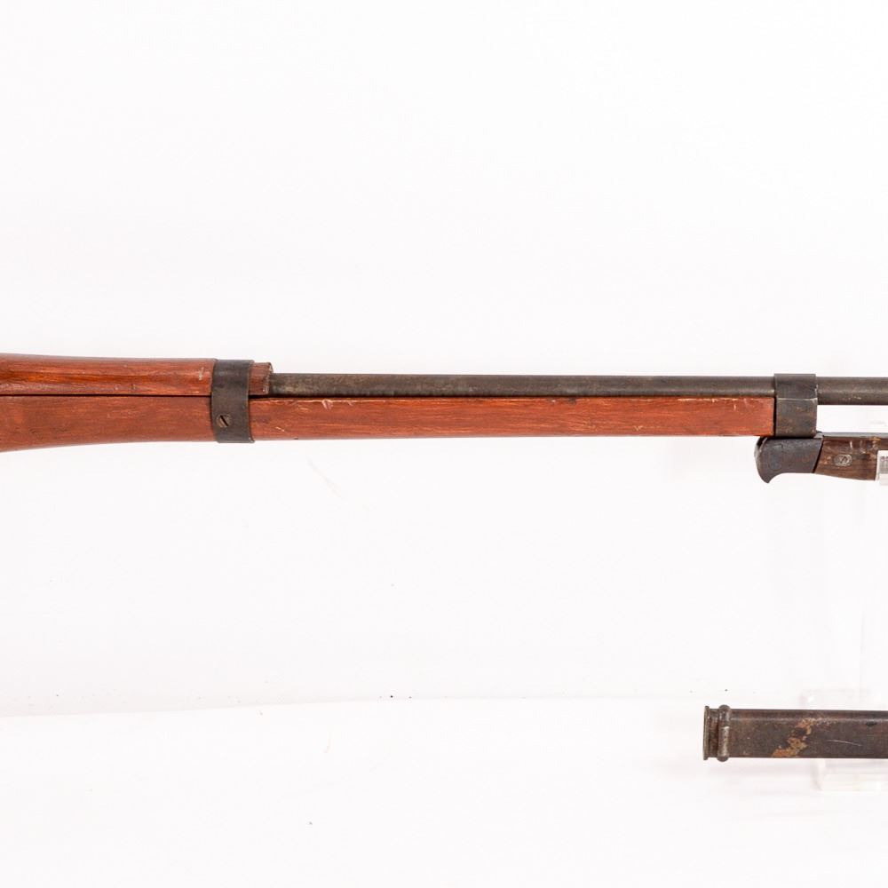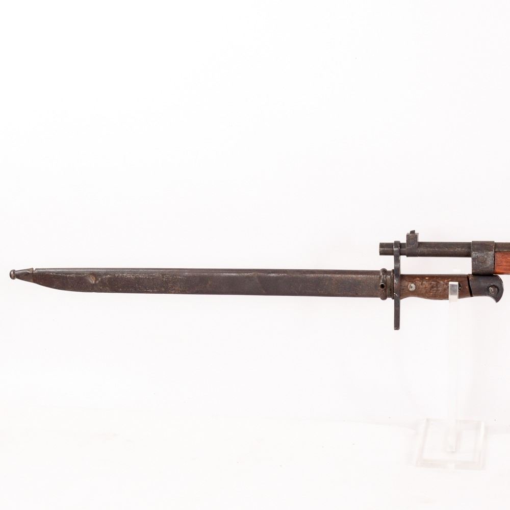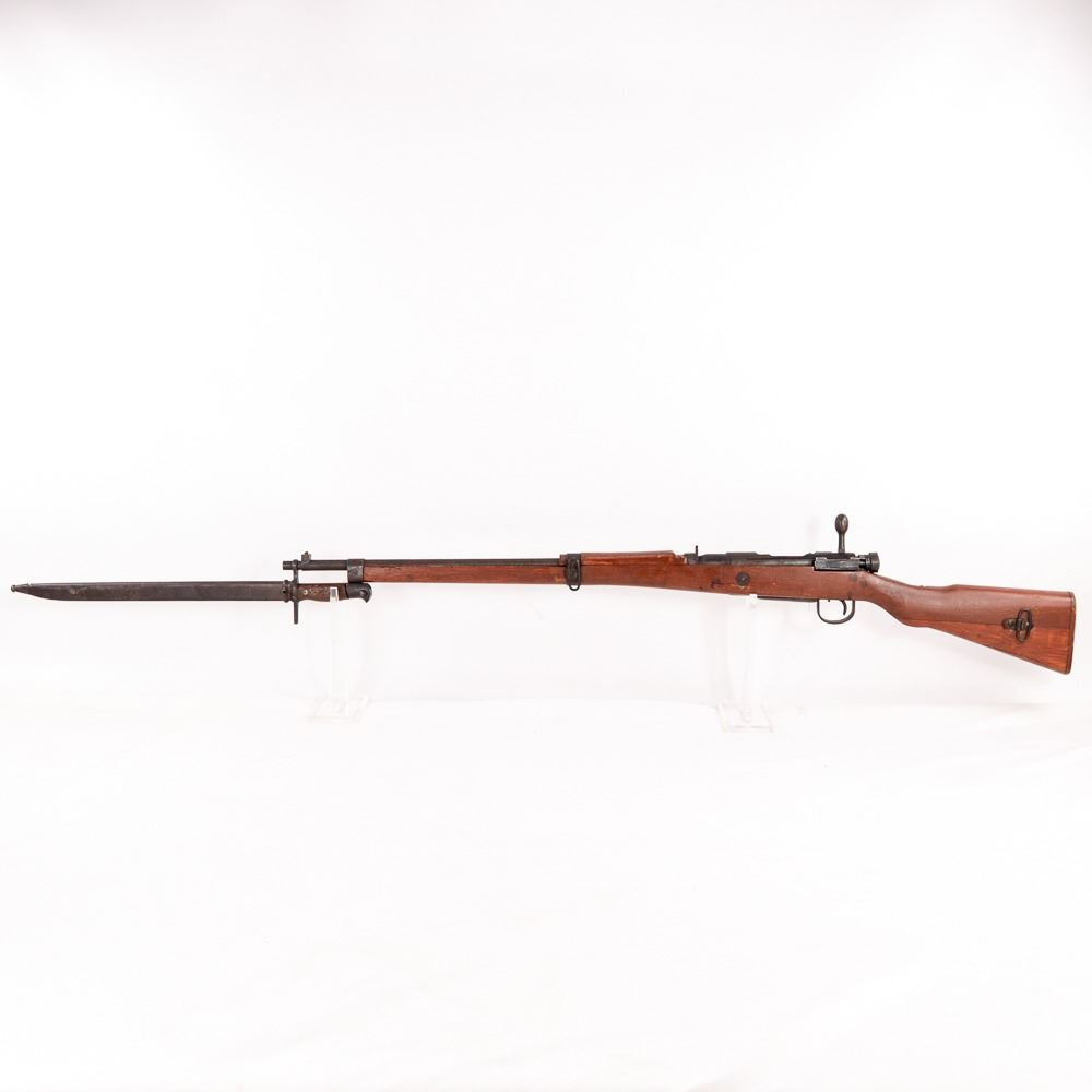 Arisaka Type 38 7.7 Rifle & Bayonet & scabbard in good condition with some wear, scratches, dings and oxidation. Stock has been stained a different color. MUM is intact! Action is smooth and functional, bore is dirty. C&R Eligible, S/N: 86334