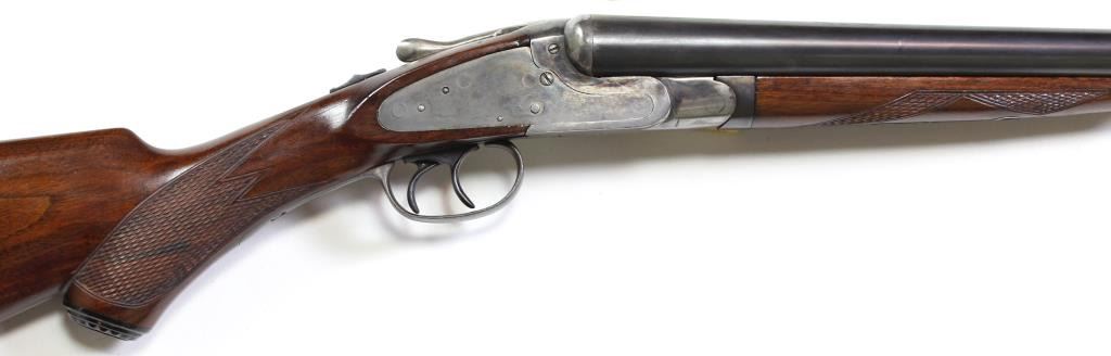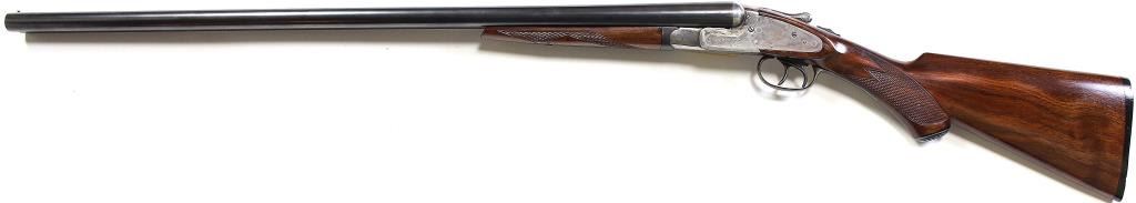 Aristocrat 12 ga. SN 217188 double barrel shotgun, 30" barrels, blued and case hardened finish, checkered quality walnut stocks. Barrels show 95% plus finish, rainbow case color to receiver, walnut stocks with extra coat of clear, nice wood to metal fit shotgun, 30" barrels, blued and case hardened finish, checkered quality walnut stocks. Barrels show 95% plus finish, rainbow case color to receiver, walnut stocks with extra coat of clear, nice wood to metal fit, sharp checkering, original buttplate intact, tight actions with very good shiny bores.