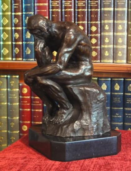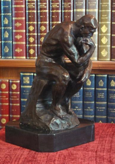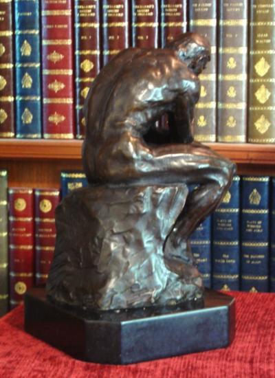 Rodin's The Thinker Bronze Sculpture, 12"H x 7"W x 8"D 20 lbs. This bronze sculpture was produced using the "Lost Wax" casting method. The"Lost Wax" Cast method is the most precise metal casting technique in existence, ensuring exquisite detail of the original host model which is usually sculpted in clay or wax. This "Lost Wax" casting method is an extremely labor intensive and expensive process, but the end results produce a Heirloom Quality Masterpiece!