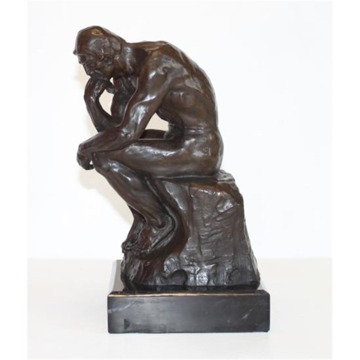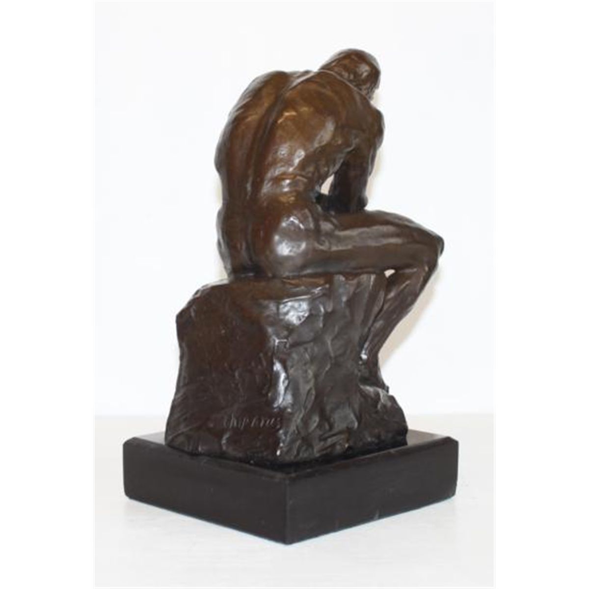 The Thinker Bronze Sculpture, After Chiparus, 12"H x 7"W x 8"D 20 lbs. This bronze sculpture was produced using the "Lost Wax" casting method. The"Lost Wax" Cast method is the most precise metal casting technique in existence, ensuring exquisite detail of the original host model which is usually sculpted in clay or wax. This "Lost Wax" casting method is an extremely labor intensive and expensive process, but the end results produce a Heirloom Quality Masterpiece!