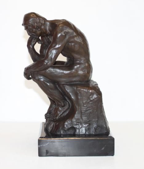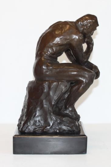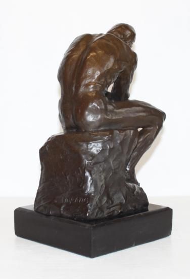 The Thinker Bronze Sculpture, After Chiparus, 12"H x 7"W x 8"D 20 lbs. This bronze sculpture was produced using the "Lost Wax" casting method. The"Lost Wax" Cast method is the most precise metal casting technique in existence, ensuring exquisite detail of the original host model which is usually sculpted in clay or wax. This "Lost Wax" casting method is an extremely labor intensive and expensive process, but the end results produce a Heirloom Quality Masterpiece!