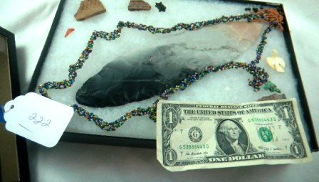Arizona Artifact Collection to include 10 inch quartz blade and beads and effigy items. Shipping $18.00. Condition is good