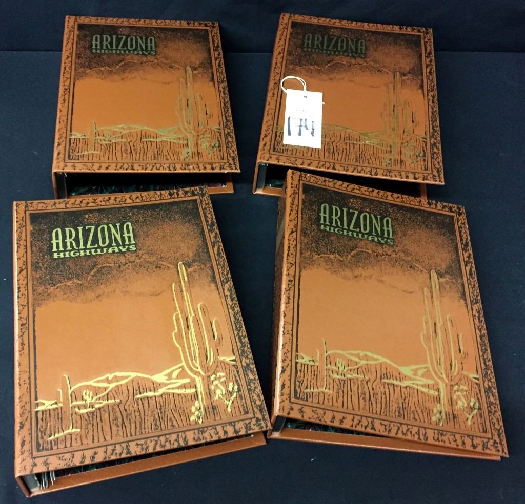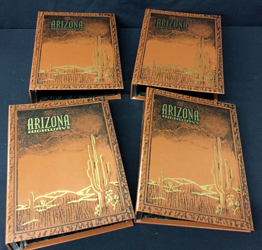 There are four different Arizona highways binders, each one is new in the box. Each holds approx. a years worth of Arizona highway magazines from your collection. Please look closely at the pics as they are an important part of our description. Shipping: There will be a $7 handling / packaging fee for shipping this lot. The actual cost of postage will be added on top of that.