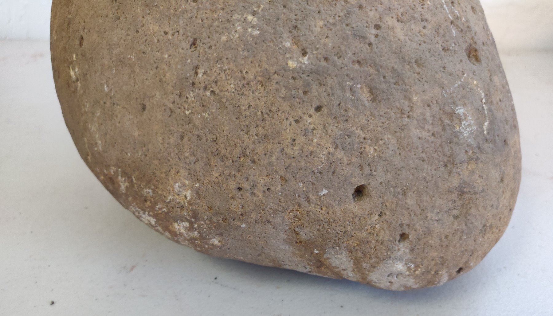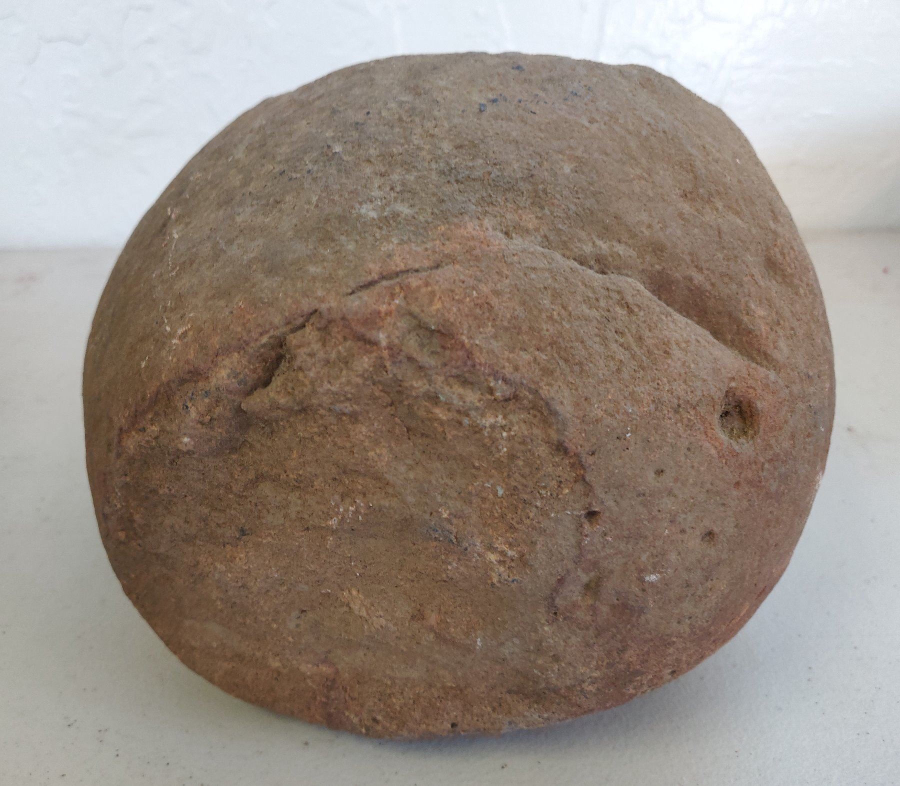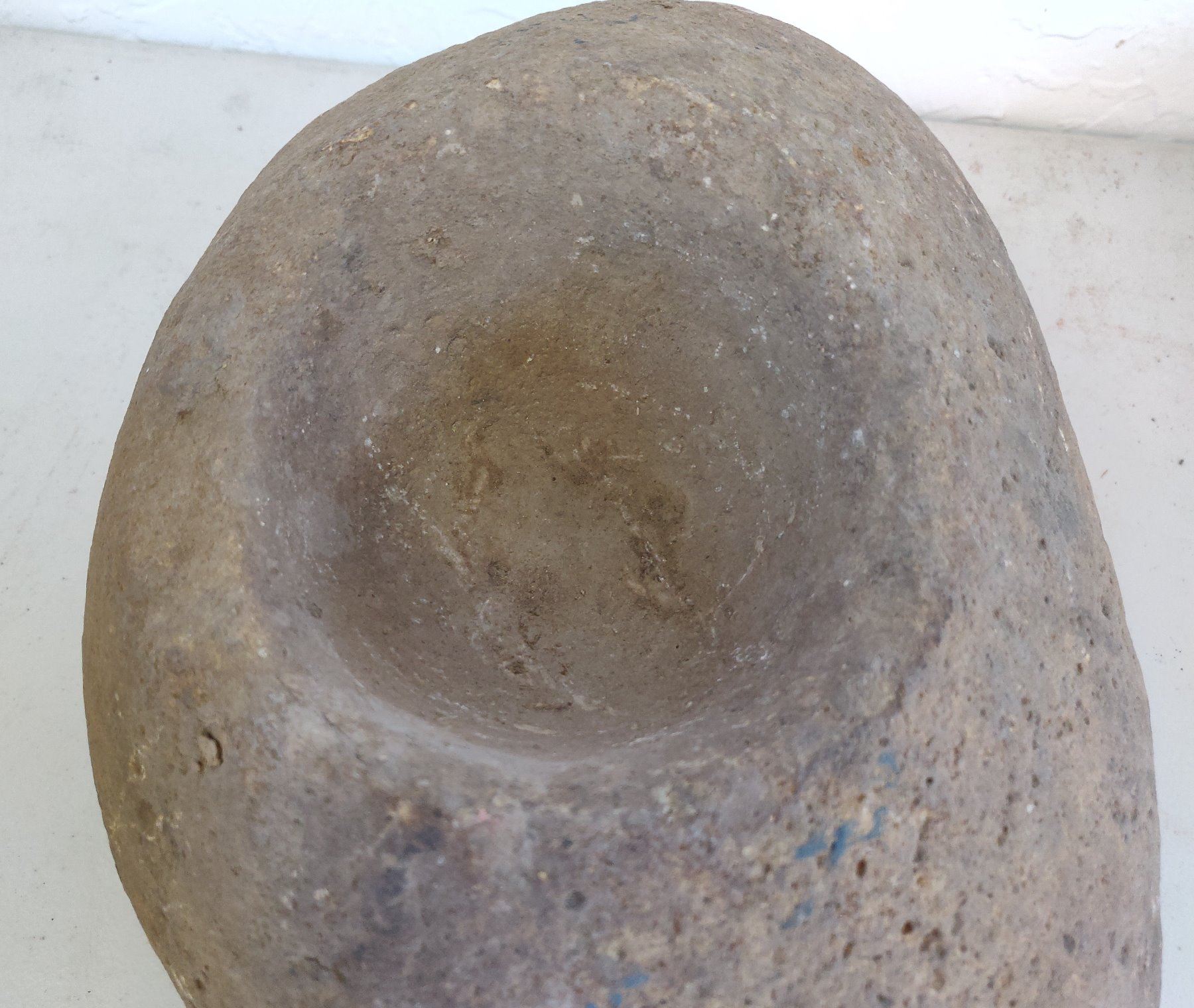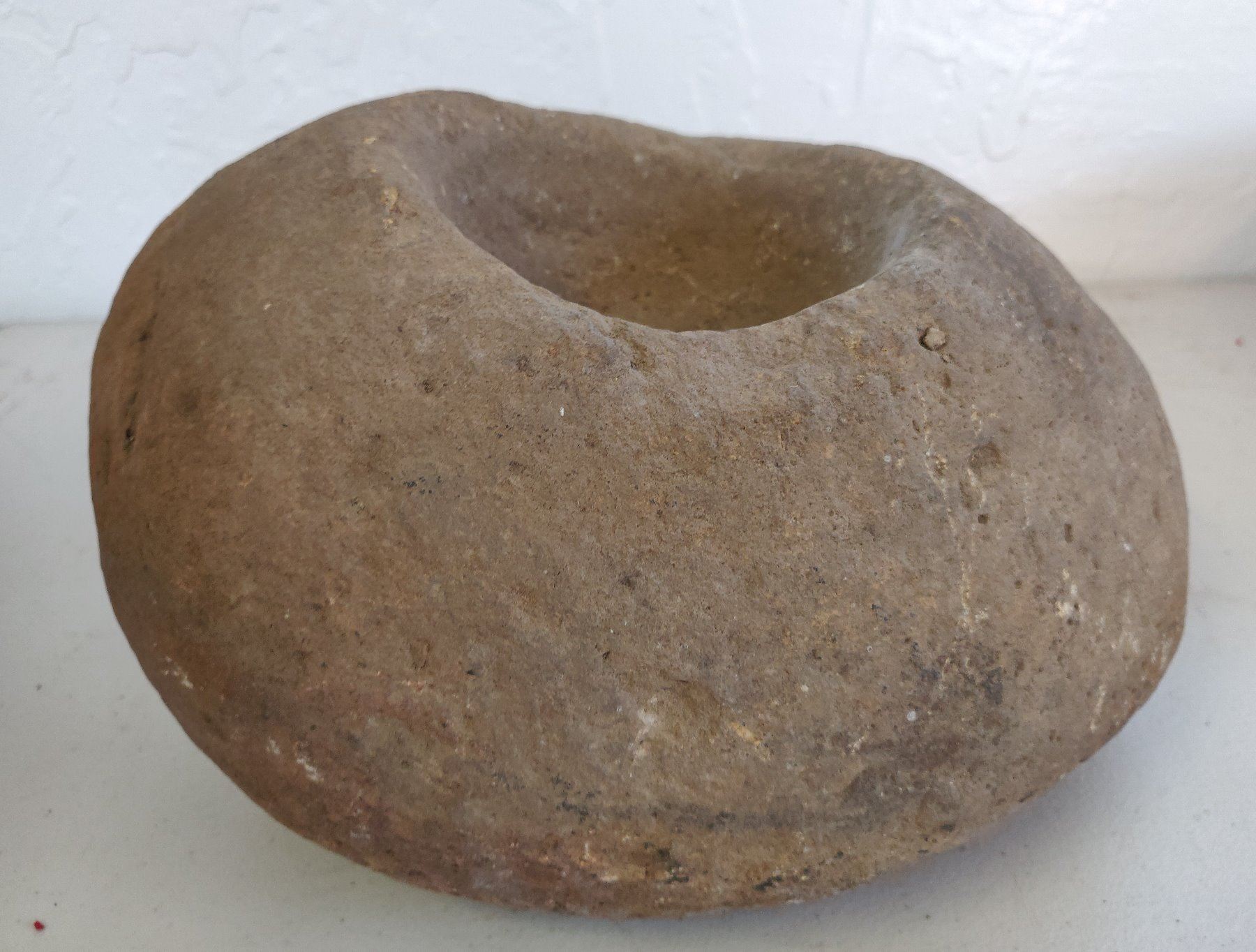 Arizona Mortar & Pestle, pre-historic item. Made of basalt stone, the item measures 10" x 8" x 9 1/2". Ajo, Pima County, Arizona. Hohokam. Condition: Chip to one end of mortar, hairline crack to pestle, see images. Shipping: $60.00 USA estimate only, due to value and heavy weight.