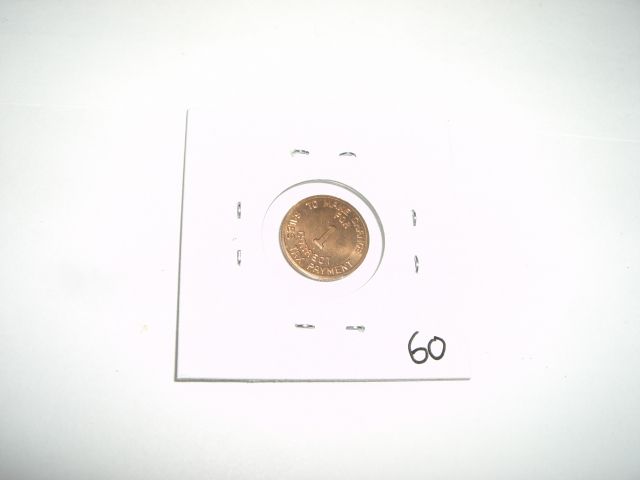 Arizona State TAX TOKEN 1 SALES TAX PAYMENT *RARE MS HIGH GRADE - NICE TOKEN*!! ***Coin, Currency & All Items Listed in this auction - Grades, Conditions and Values are not Safe Deposit Coins LLC Responsibilty. Grades, Condition and Values are determined by Consigner(s) & Buyers ONLY***