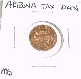 Arizona State TAX TOKEN 1 SALES TAX PAYMENT *RARE MS HIGH GRADE - NICE TOKEN*!! ***Coin, Currency & All Items Listed in this auction - Grades, Conditions and Values are not Safe Deposit Coins LLC Responsibilty. Grades, Condition and Values are determined by Consigner(s) & Buyers ONLY***